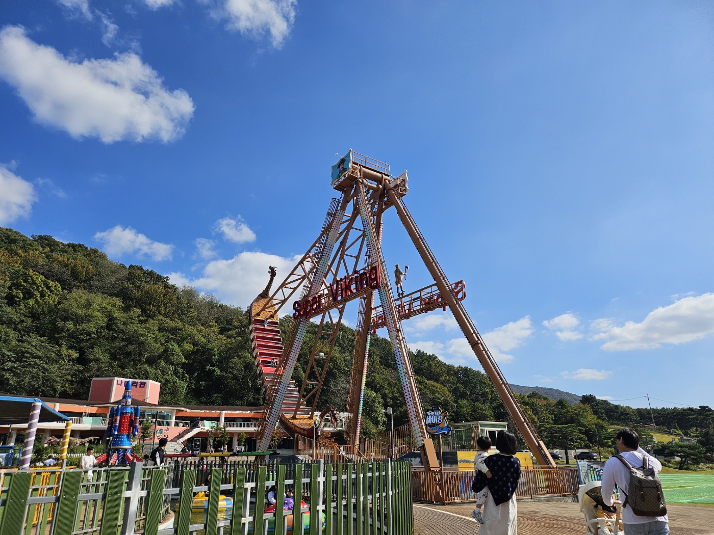 큰 바이킹을 비롯해 범퍼카, 우주선, 미니기차 등의 놀이기구가 있어요. 어떤 건 보호자와 동반해서 탈 수 있는 게 있었고, 어떤 건 동반해서 못 타는 게 있으니 확인을 꼭 하셔야해요.