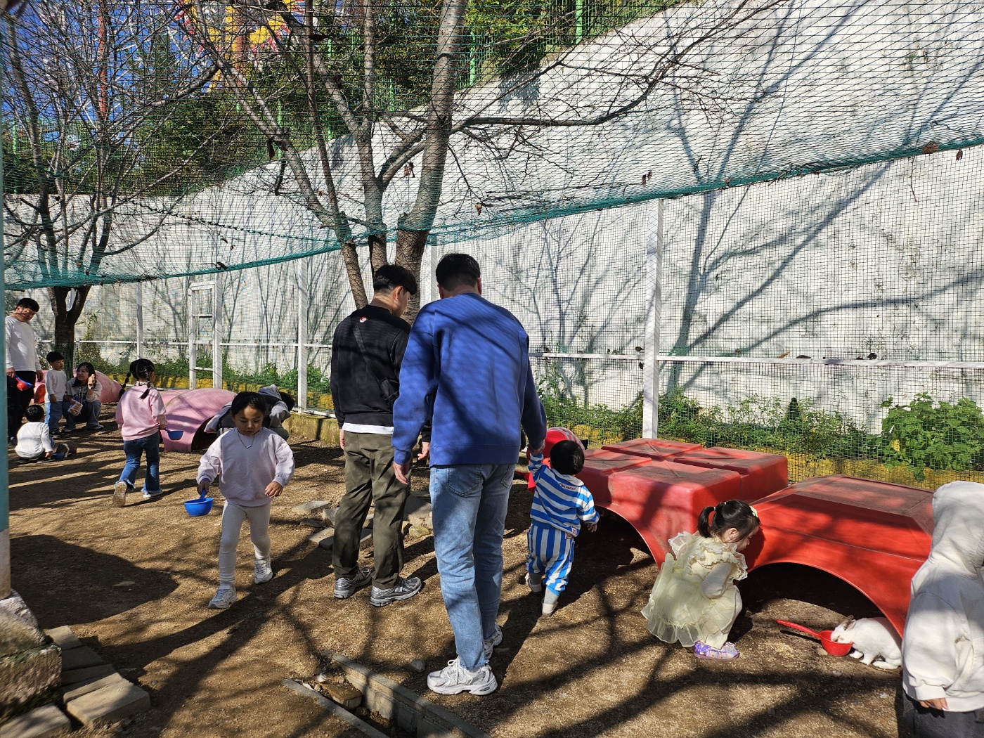 회전목마 위쪽으로 올라가면 하늘자전거, 관람차 등이 있고 이렇게 닭과 토끼를 직접 보고 먹이주기 체험을 할 수 있는 공간이 있었어요. 한바가지에 천원인데 이런 경험이 좋다보니 많이들 체험하더라고요. 김해가야랜드가 전체적으로 잘 관리되고있는 느낌은 아니었지만 그래도 아이들과 매주 어디를 가야한다면 두세번쯤은 가보기 좋은 것 같아요. 저희도 16개월이 다녀왔으니 2~3살 때 또 가지 않을까 싶어요. 청룡열차도 있고 없었던 쥬라기공원도 생겨서 산책하기 좋았고요. 저희는 오전 11시쯤 도착해서 3시간 놀다가 나왔는데 2시넘어가니 김해가야랜드를 찾는 사람들이 진짜 많더라고요. 주차장이 가득찰 정도였어요. 아기 낮잠때문에 오전에 갔는데 좀 더 크면 오후에 가는 게 좋을 것 같지만 주차가 좀 대란일듯해요.